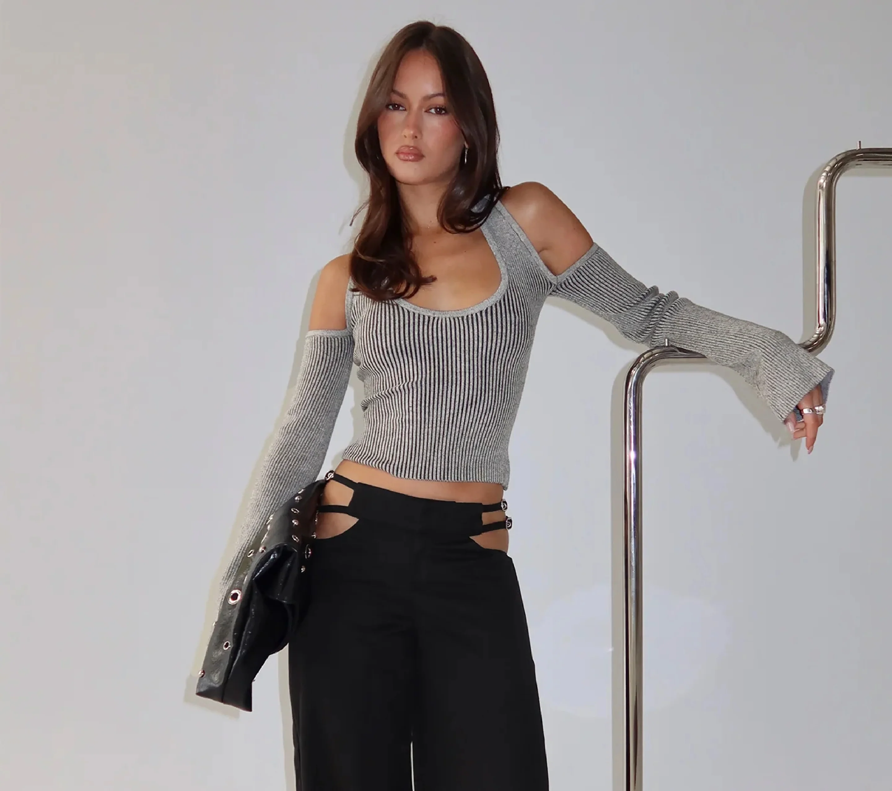 Florrie Off Shoulder Foldover Long Sleeve Top Chocolate
