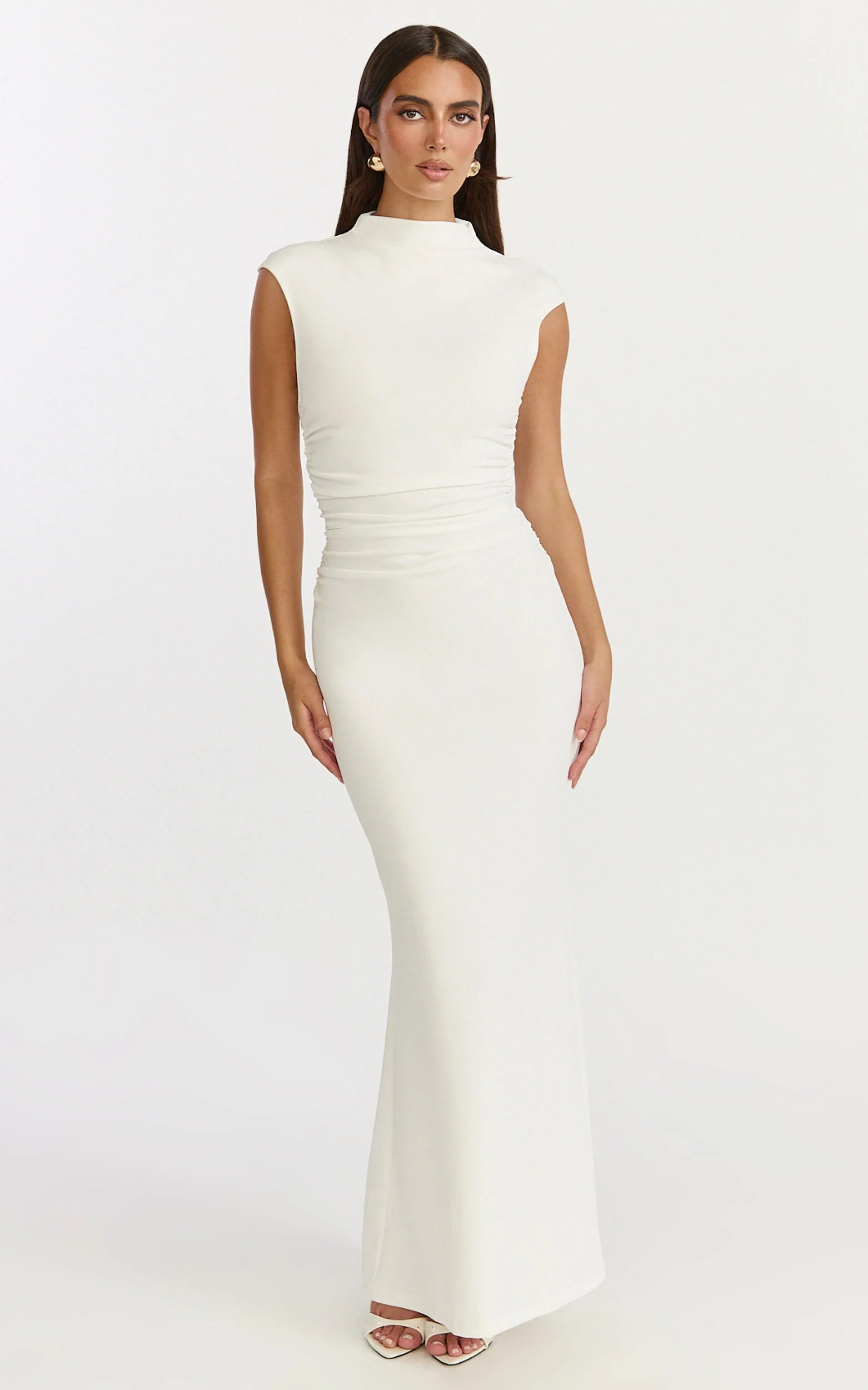 A high neckline and cap sleeves frame your shape, while the fluid maxi skirt skims and elongates for that effortlessly polished finish. It’s the kind of piece that does the heavy lifting, zip it up, add a smile, and go.